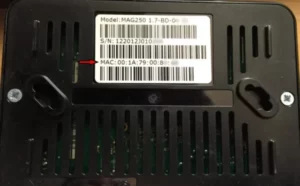 1. Ga naar de achterkant van je MAG waar het MAC-ID (of MAC-adres) staat aangegeven.