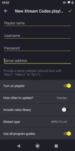 Kies om verbinding te maken met XTREAM Codes API.
